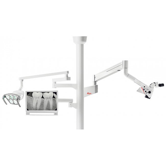 Открытая несущая система у стоматологической установки. Быстрая доступность к рабочим элементам экономит ваше время и препятствует лишней трате сил. Все находится непосредственно под вашей рукой: операционный светильник, рентген-аппарат, операционный микроскоп, дополнительные приборы, монитор – все техническое оборудование вашего кабинета.