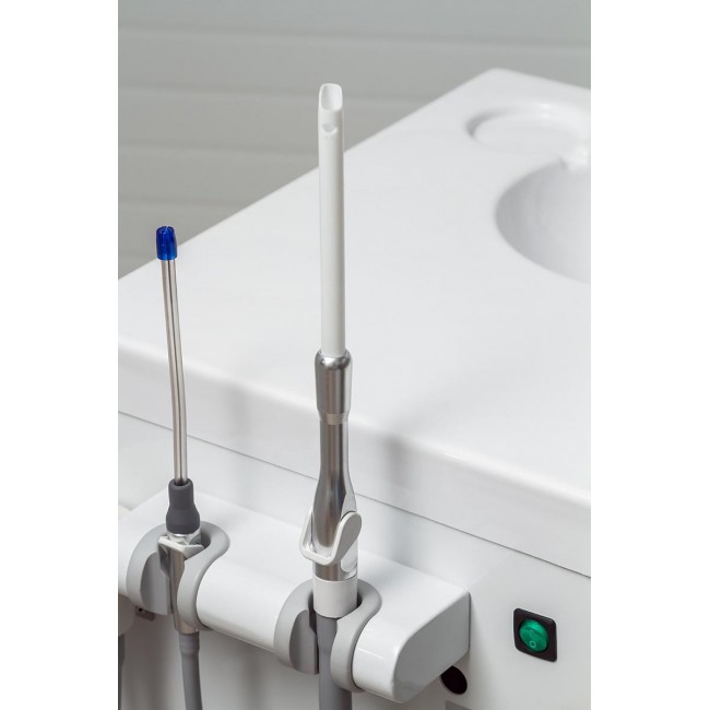 Стоматологический аспиратор обеспечивает хороший уровень аспирации, и его работа не зависит от работы самой стоматологической установки. Аспиратор (с ручным опустошением резервуара) может легко перемещаться из одного кабинета в другой, поэтому его можно применять для экстренного обеспечения дополнительного вакуума при централизованной сети аспирации или вместо аспиратора самой стоматологической установки. В аспираторе также имеется дополнительная функция: плевательница с омывателем.