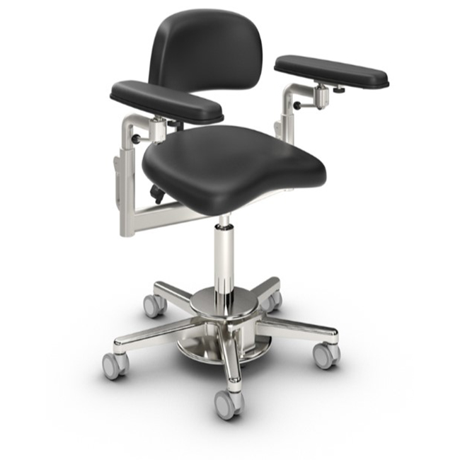 • Для сохранения стерильности хирург легко может раздвинуть подлокотники локтями или отодвинуть назад за стул.