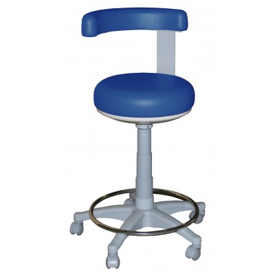 Сидение с анатомической формой гарантирует удобство и комфорт для работы врача, а установленное на крестовине стула кольцо обеспечивает опору ногам стоматолога.