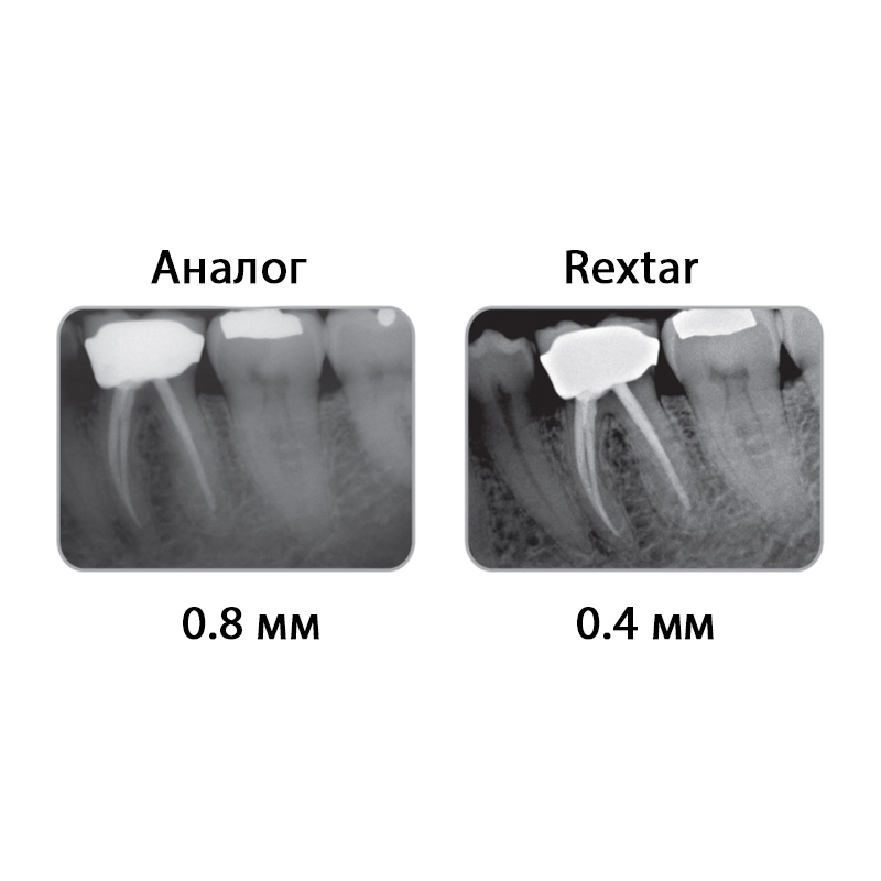 Фокальное пятно: 0.4mm На качество изображения влияет размер фокального пятна, а также угол расхождения лучей, чем они меньше, тем лучше изображение, сфокусированнее. У рентген аппарата REXTAR LCD фокальное пятно равно 0.4 мм, а угол расхождения лучей 12 градусов. |