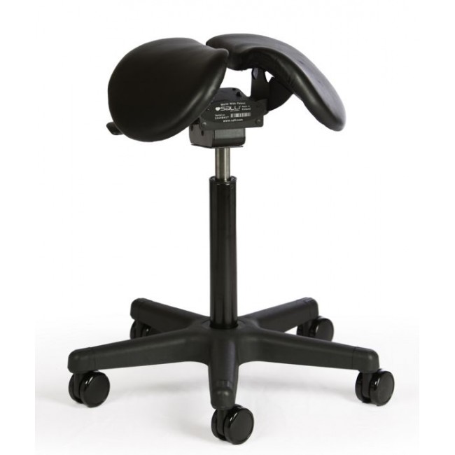На стуле-седле человек не сидит полностью, а занимаем промежуточное положение между стоячим и сидячим. При этом угол между бедром и позвоночником получается около 135 градусов, а ноги расставлены в стороны. Это поза наездника, самая естественная для человека среди всех сидячих поз.